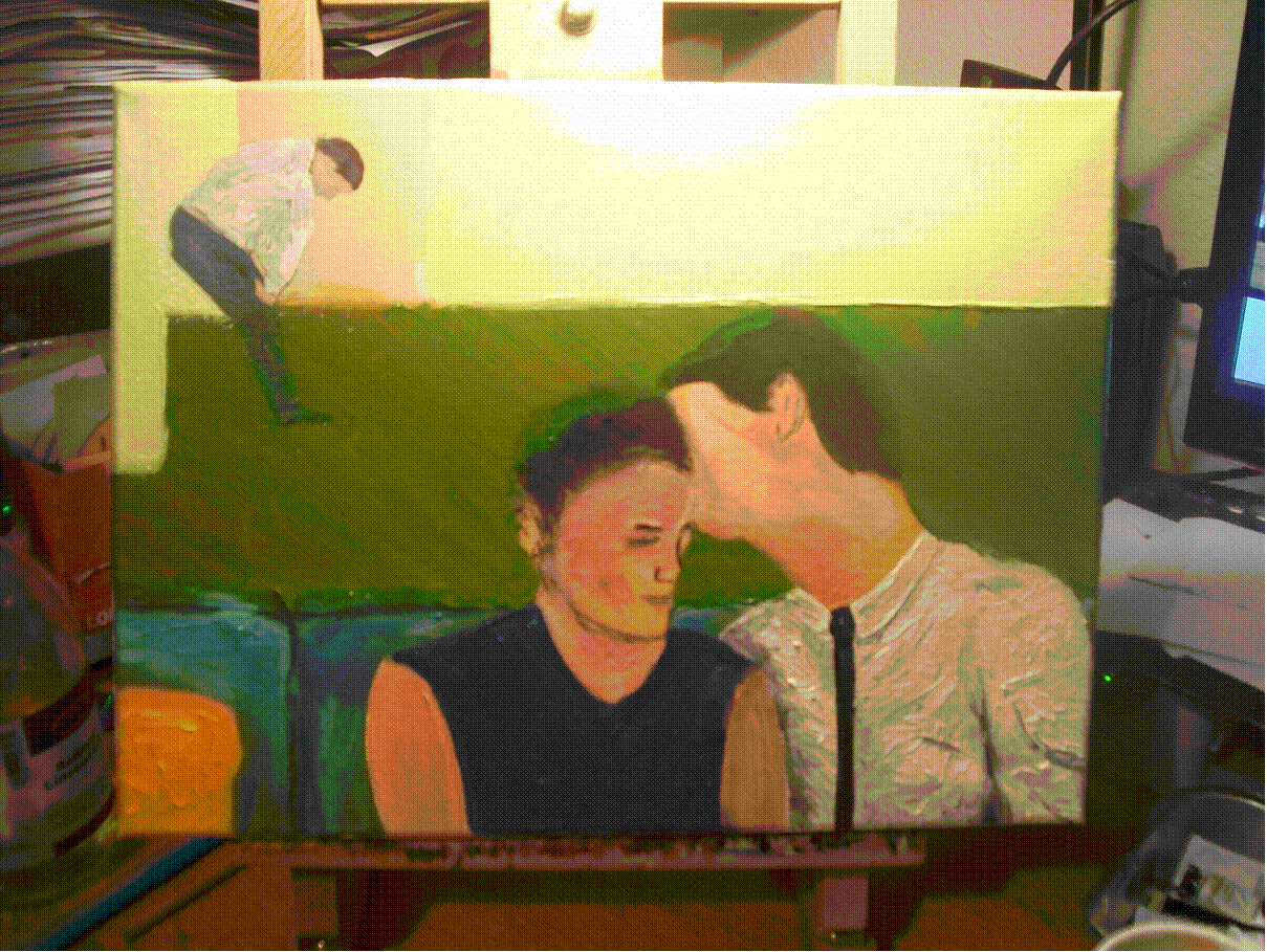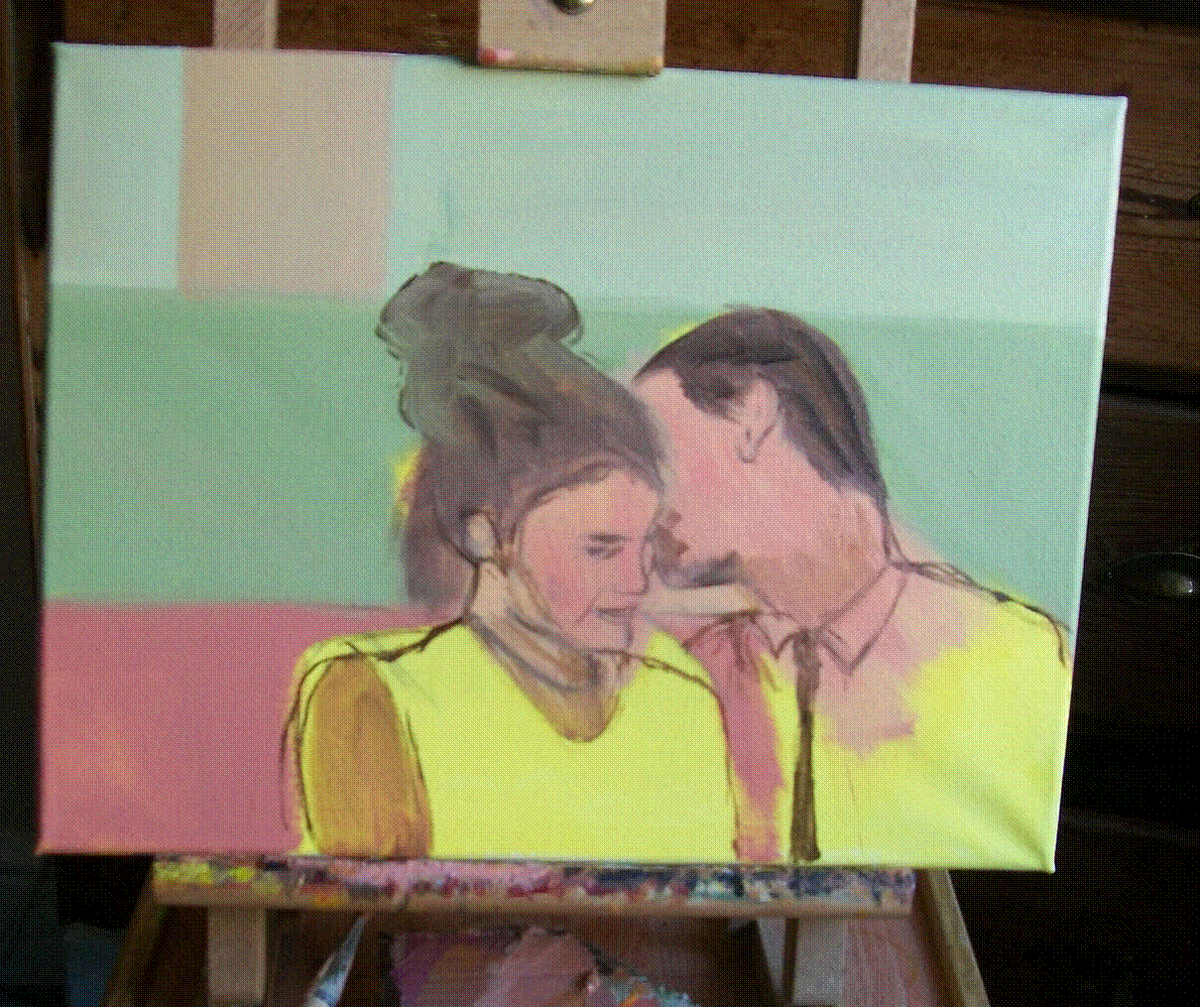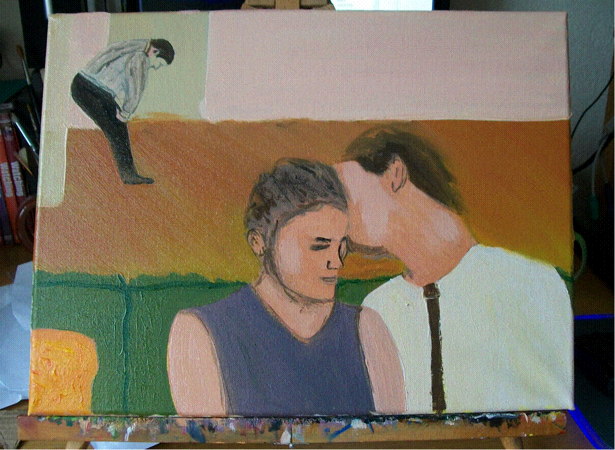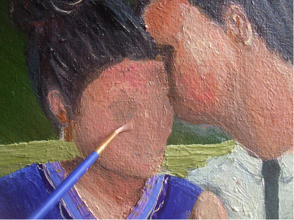 bigger 50 x 40cm board to make the faces easier. I must have painted the lady’s