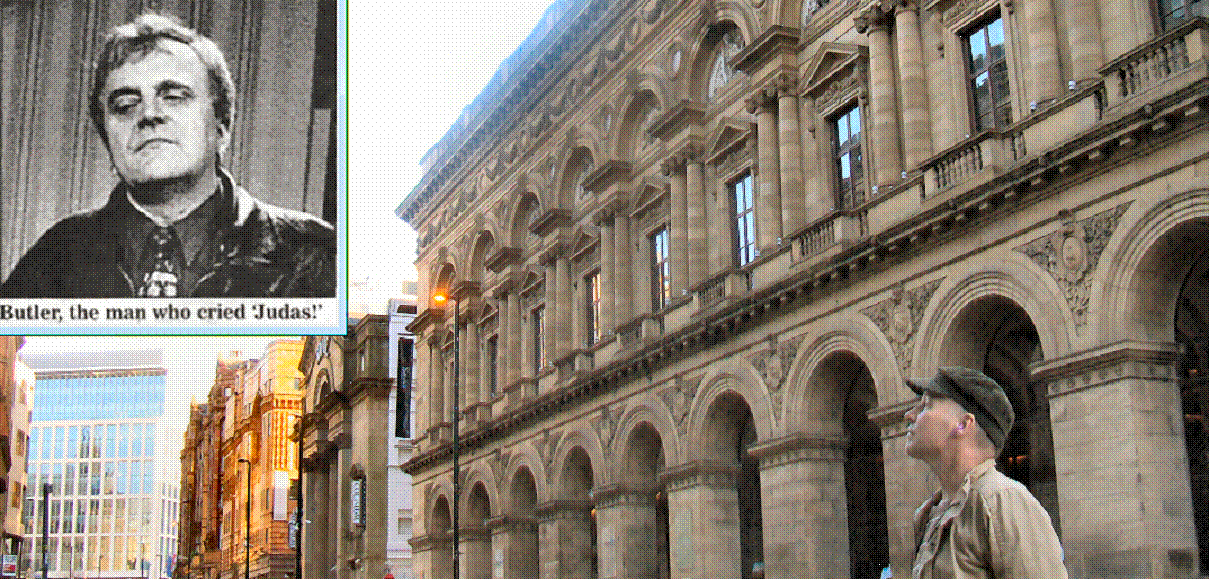 was here outside the Free Trade Hall in Manchester where it happened in 1965.