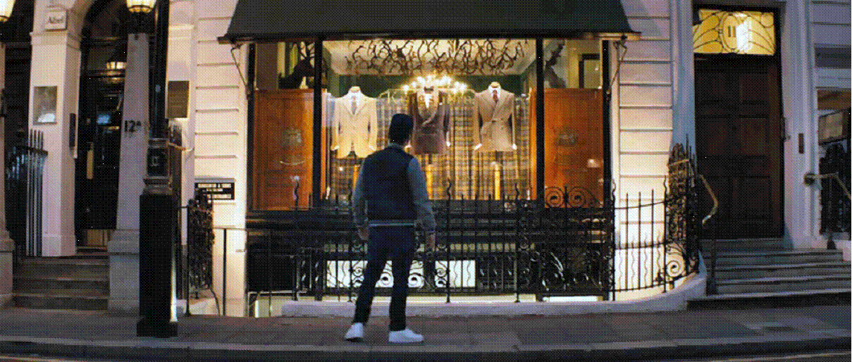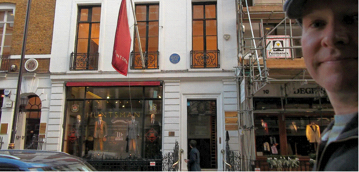 member (Colin Firth) runs operations from a tailor's shop on Savile Row in London and here I am out stood outside. It's