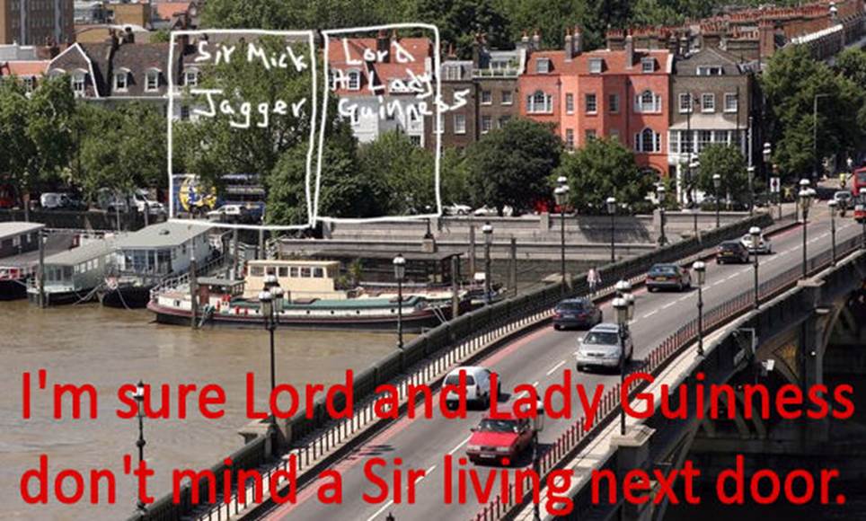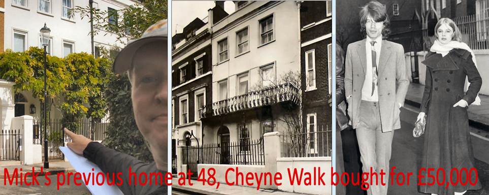outside the homes of Mick Jagger and Keith Richards (about 40 metres apart) on Cheyne Walk overlooking the River Thames in Chelsea. Before