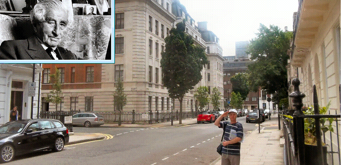 Here I am outside the home of Sir Robert Mayer, a financier, philanthropist