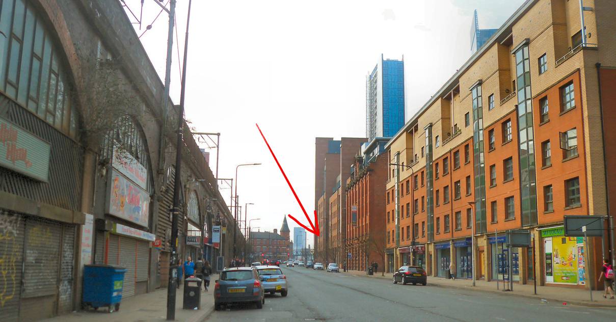 am stood outside the former site of The Haçienda nightclub