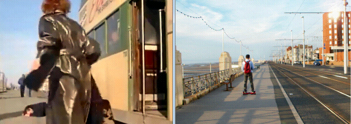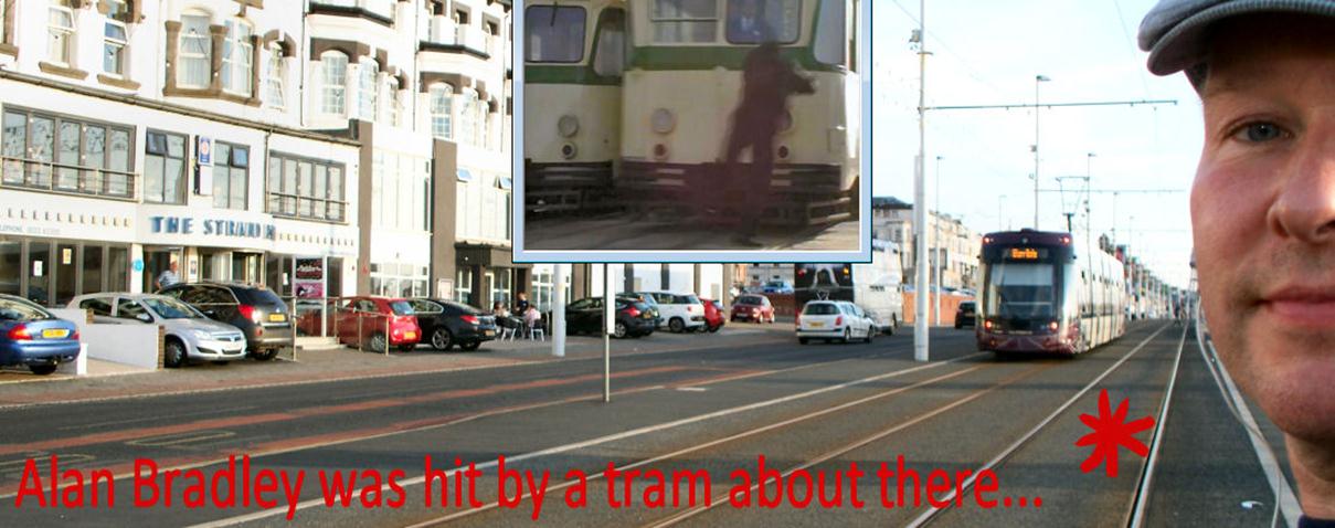 was knocked over by a tram. I was nearly knocked over by a cool dude on a