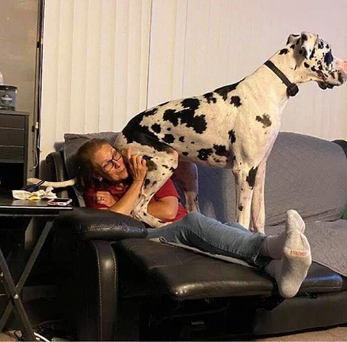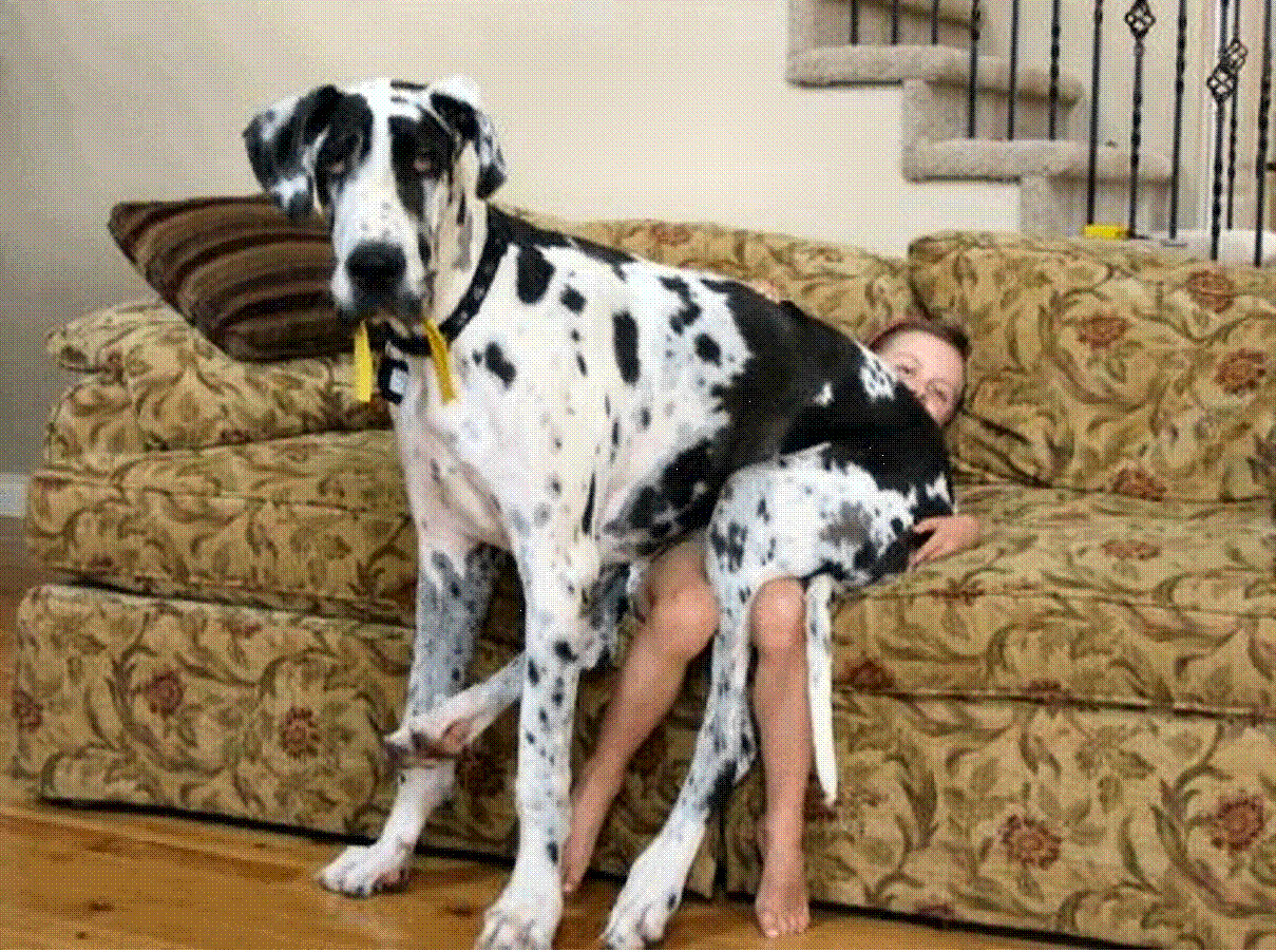 by a Great Dane. The dogs try to pull us both into the road. I've never spoken