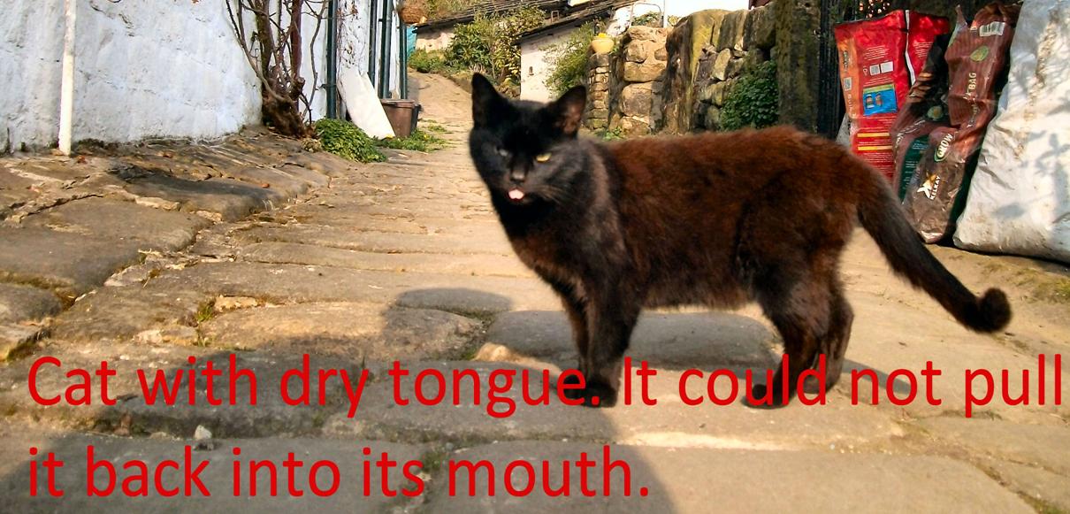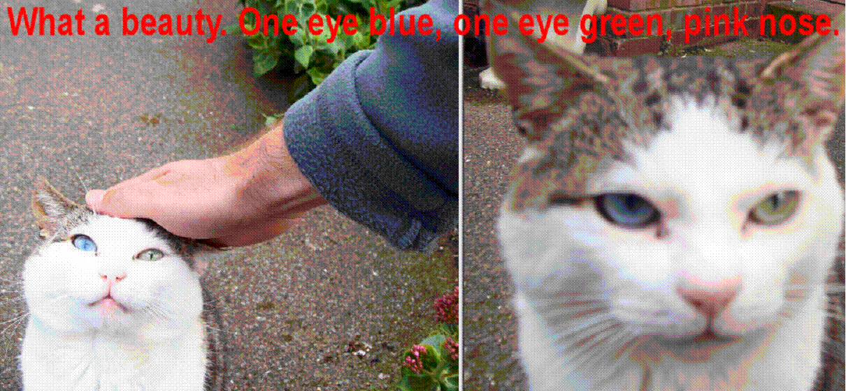 cat with different coloured eyes and a cat with a dry protruding tongue. Its