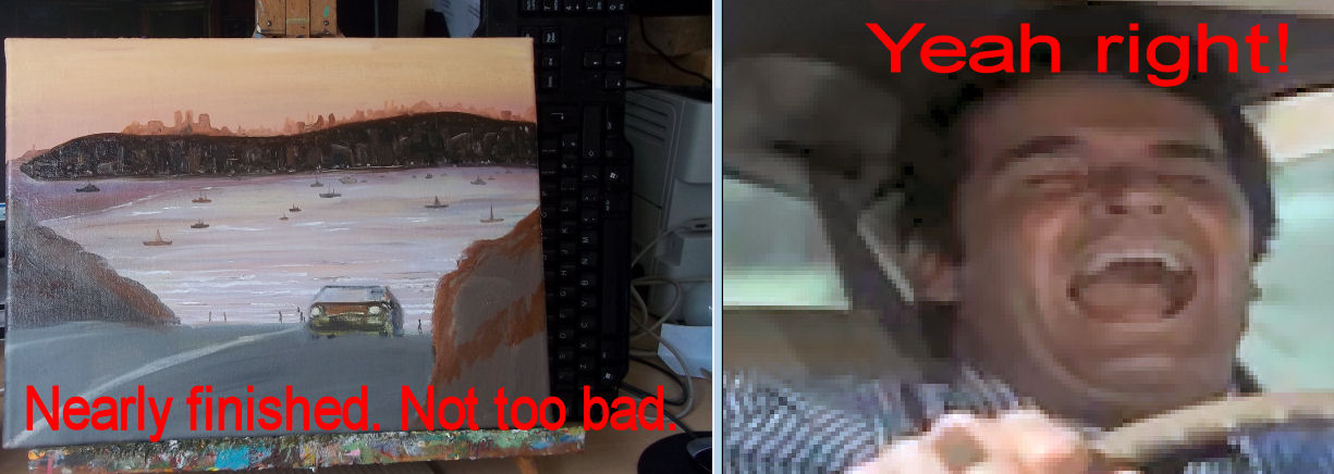 this painting. I had to cut the Firebird car from another scene and plonk it