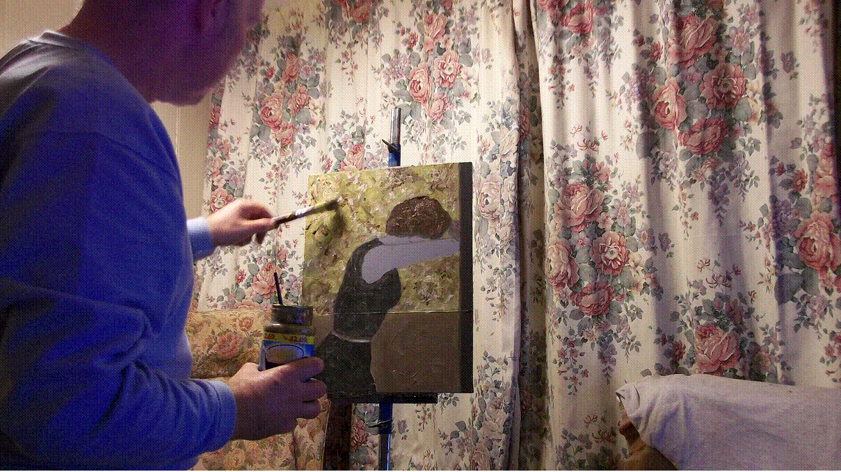 stop. This bare grainy look seemed to fit the theme of the painting.