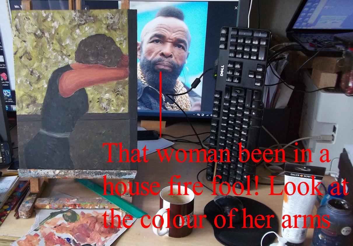 Oddly I painted the woman's arms red and realised