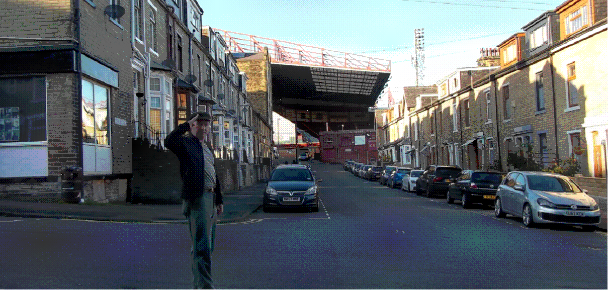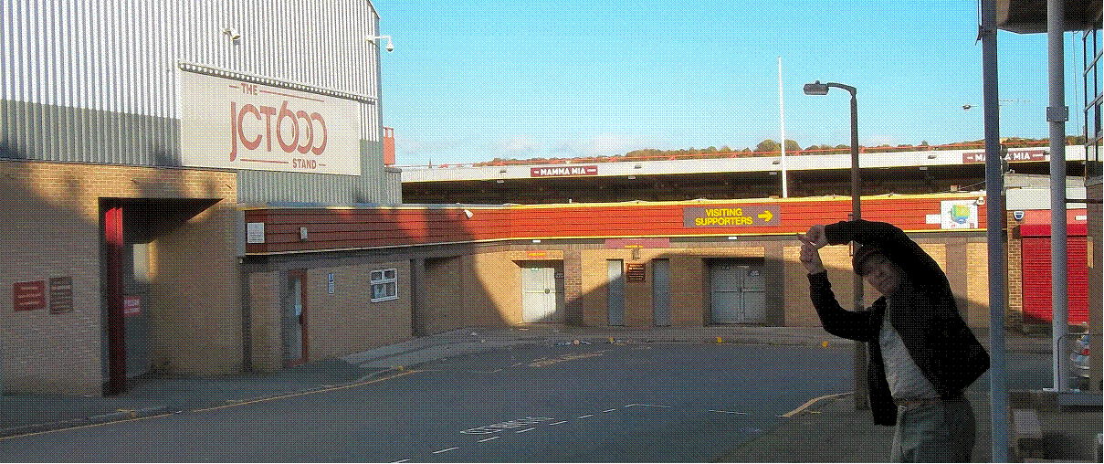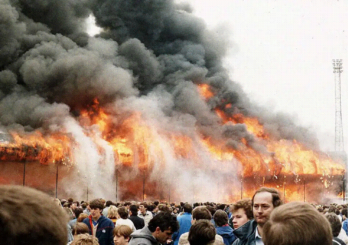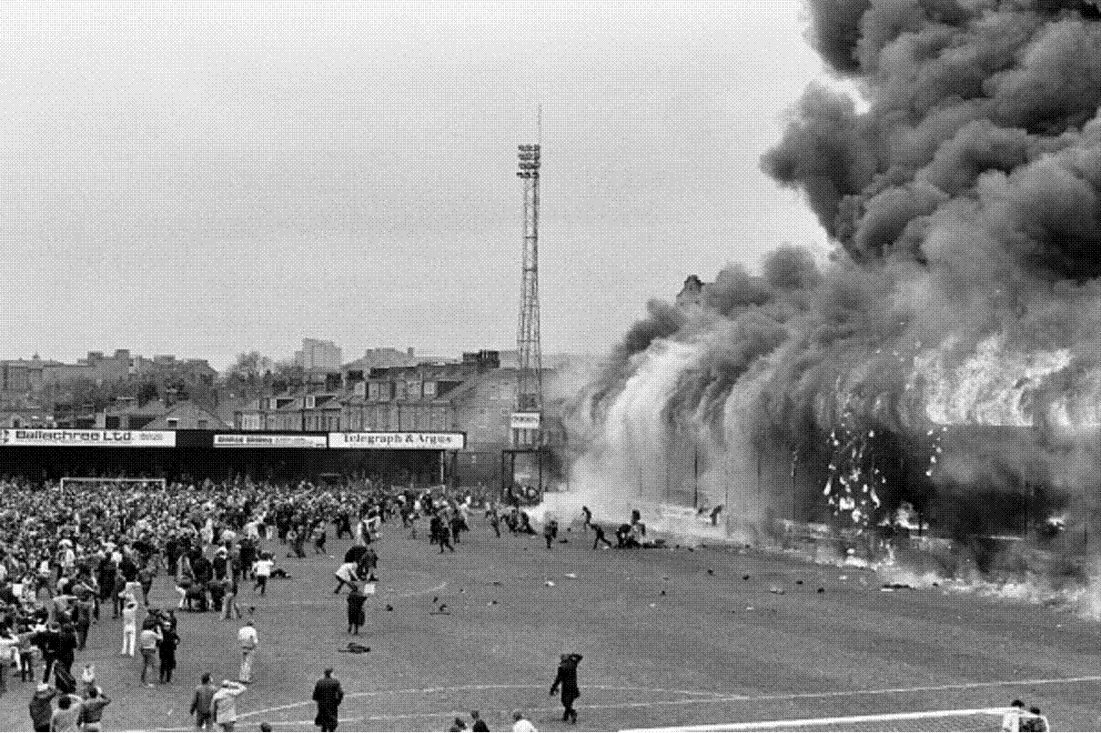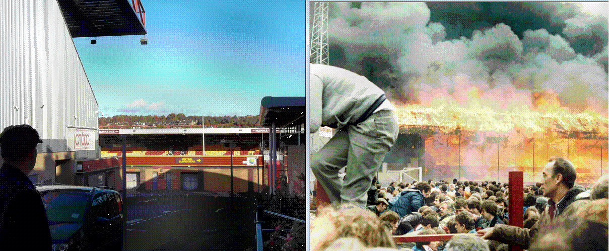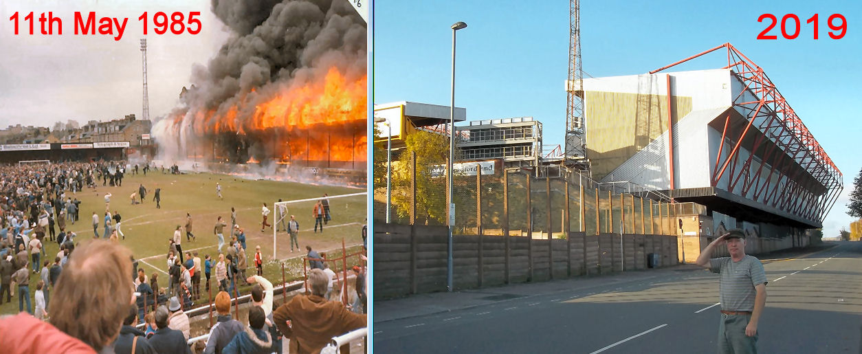 Bradford’s Valley Parade stadium in 1985 and the one at Glasgow's Ibrox Stadium in 1971. Here I am at the first one. I'd been