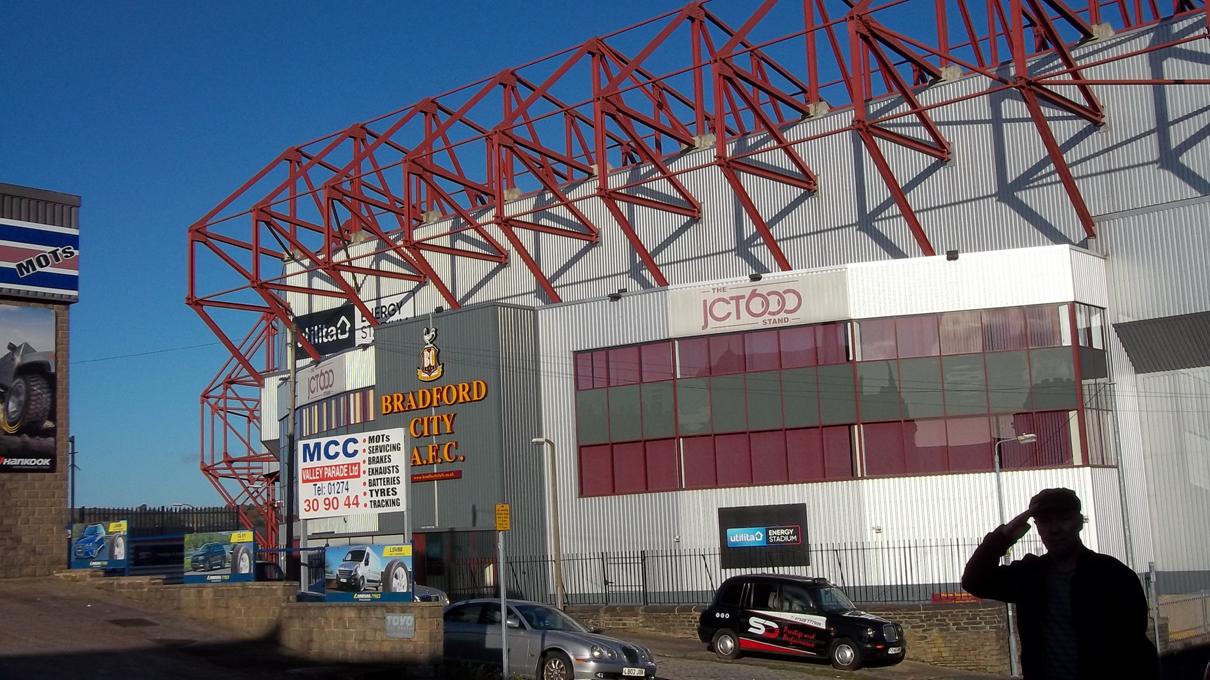 Bradford City were playing Lincoln City. Edging the turf was a stand built in