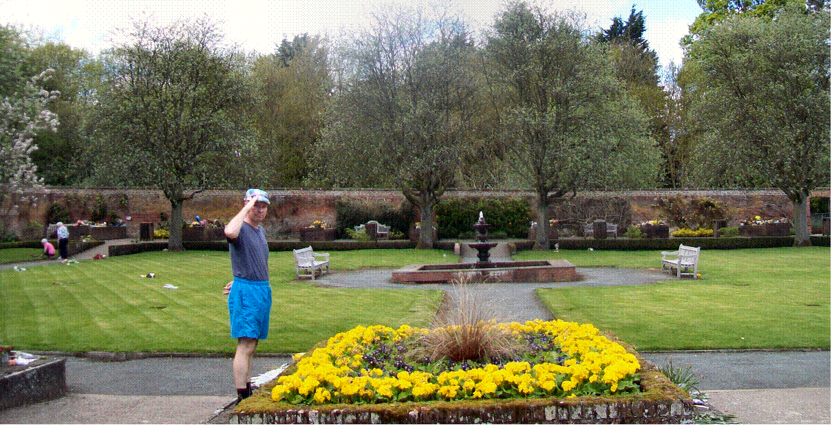 in the photos; it was a hot day. I did a heart salute at the crematorium