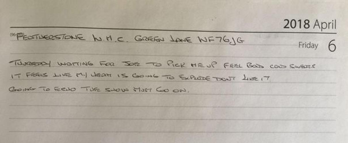 told nobody. He had chest pains hours before he collapsed writing in his diary: