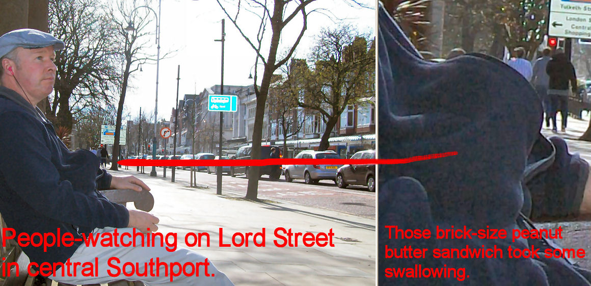 sat on a bench at Lord Street, the main shopping drag off the front as I’m sure