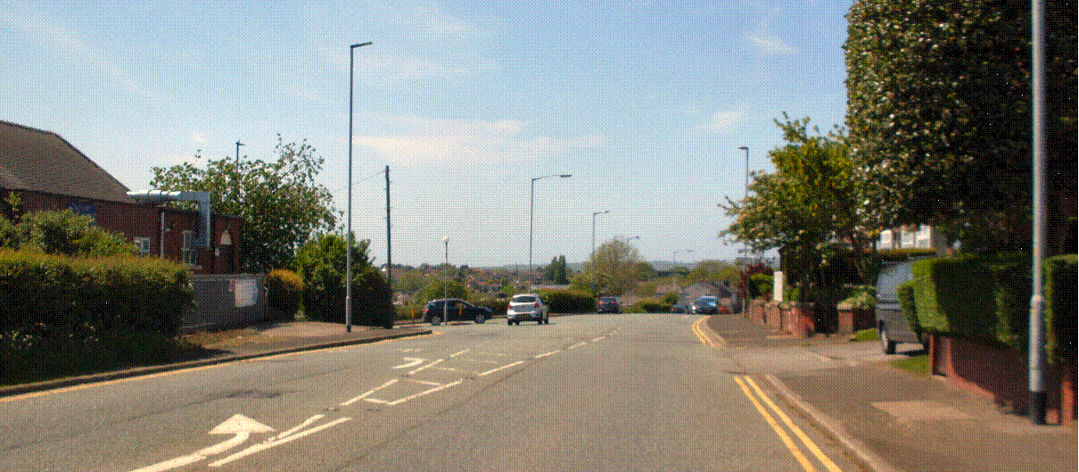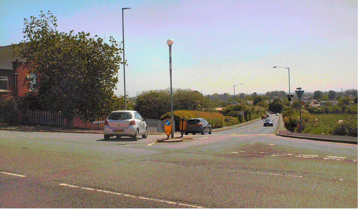 a partially blind junction - did the Mini pull right out of here into the wrong