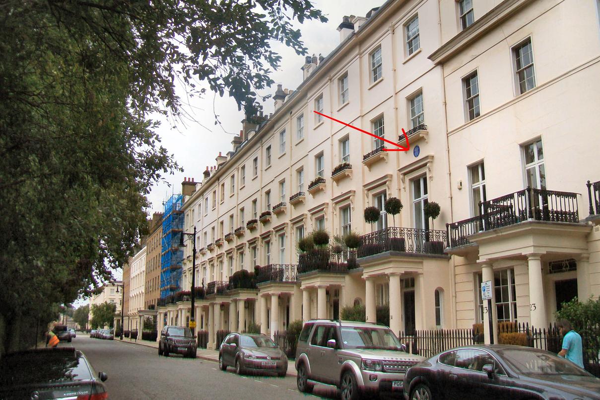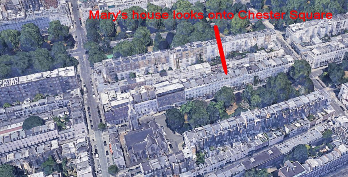 Here I am outside her home in Chester Square in Belgravia in London where she