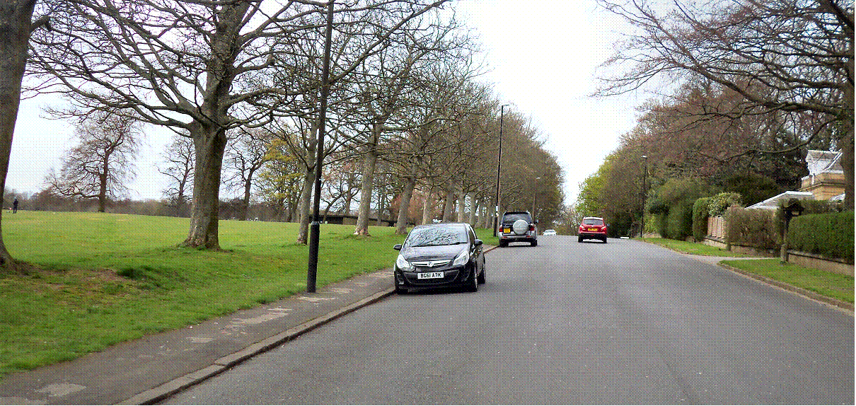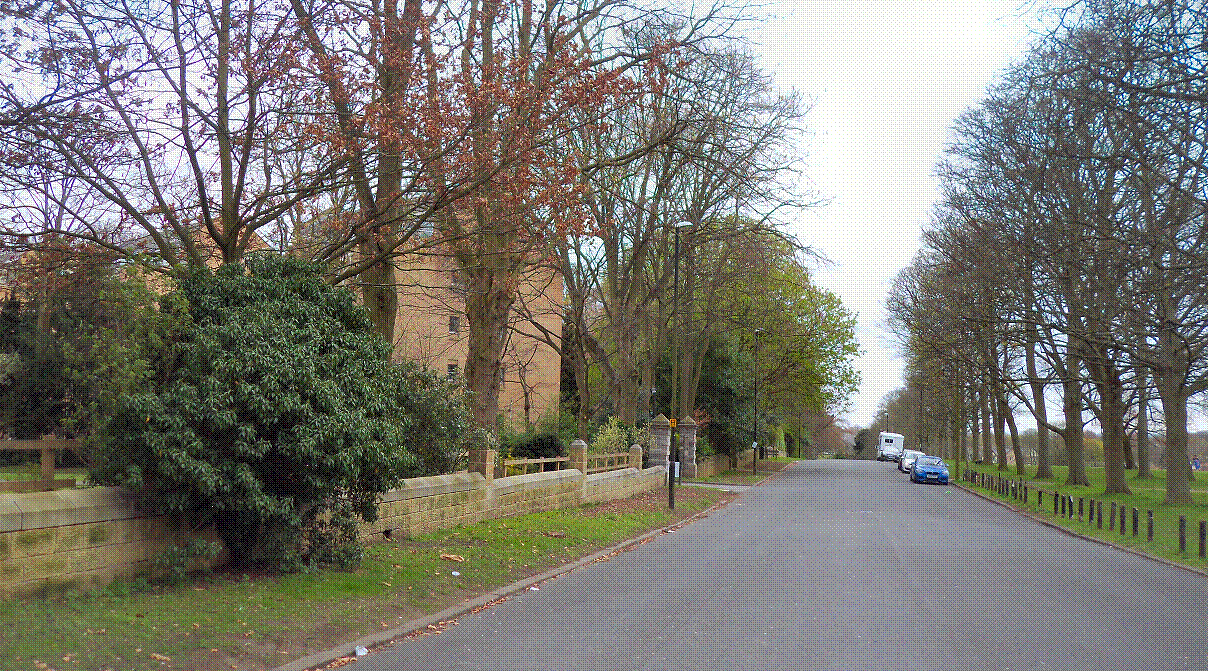 Park in Leeds, an affluent area of Victorian stone block mansion and flats.