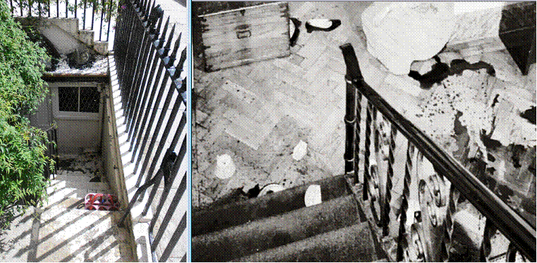 the pavement you can look down into the basement where Sandra was murdered.