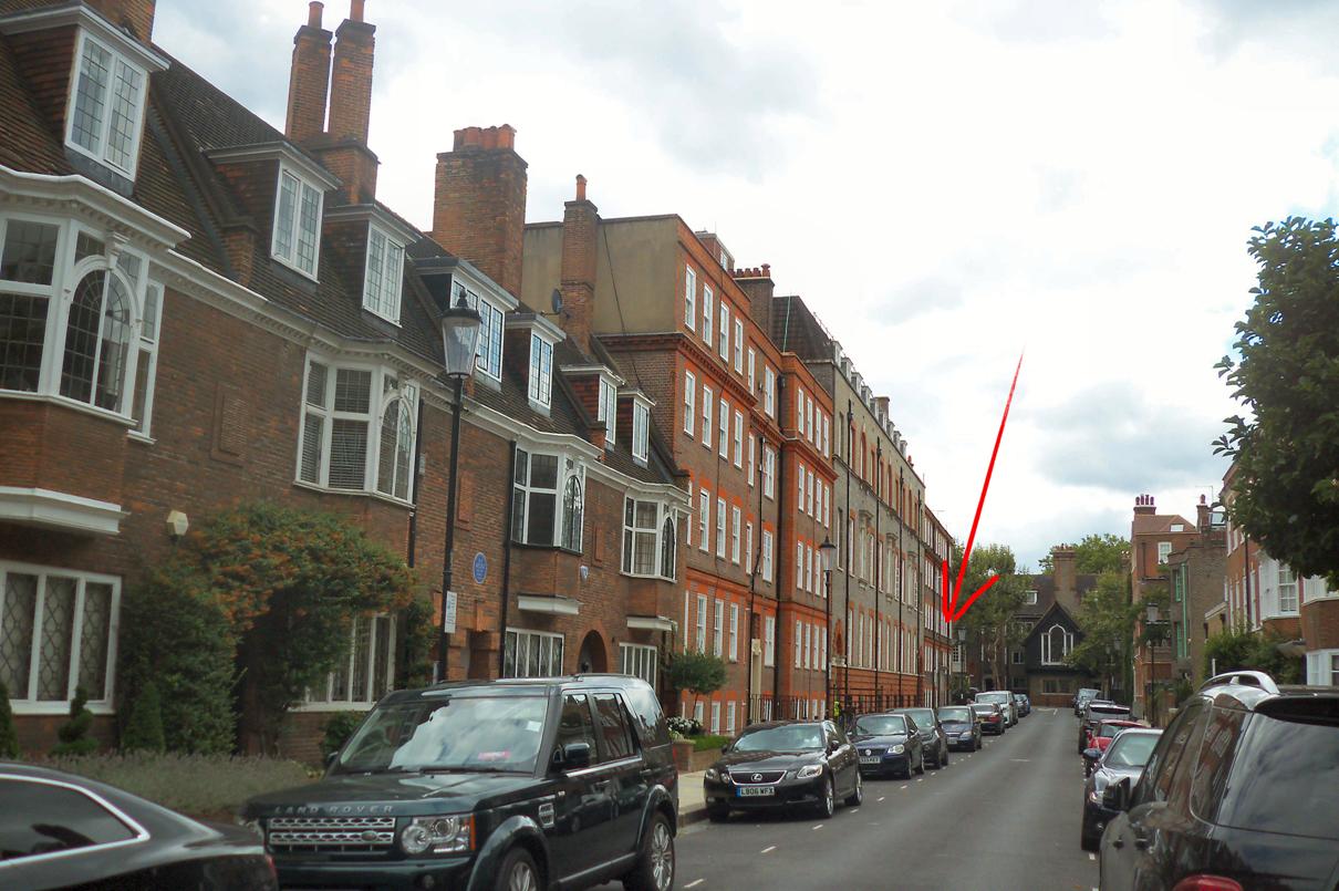 an end. It’s a neat apartment block on a quiet street in Chelsea; only one car