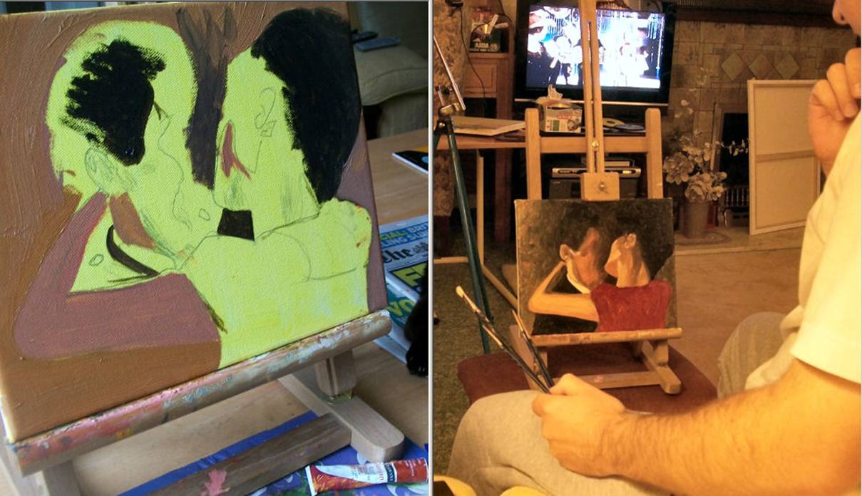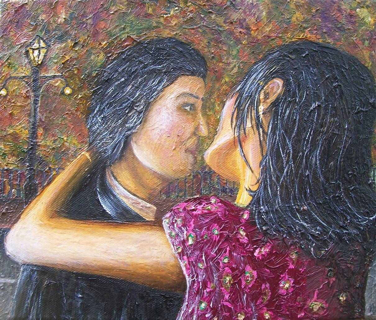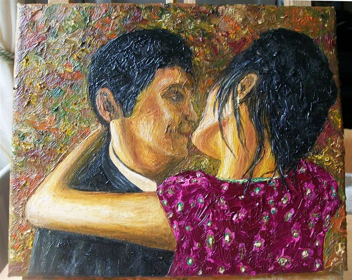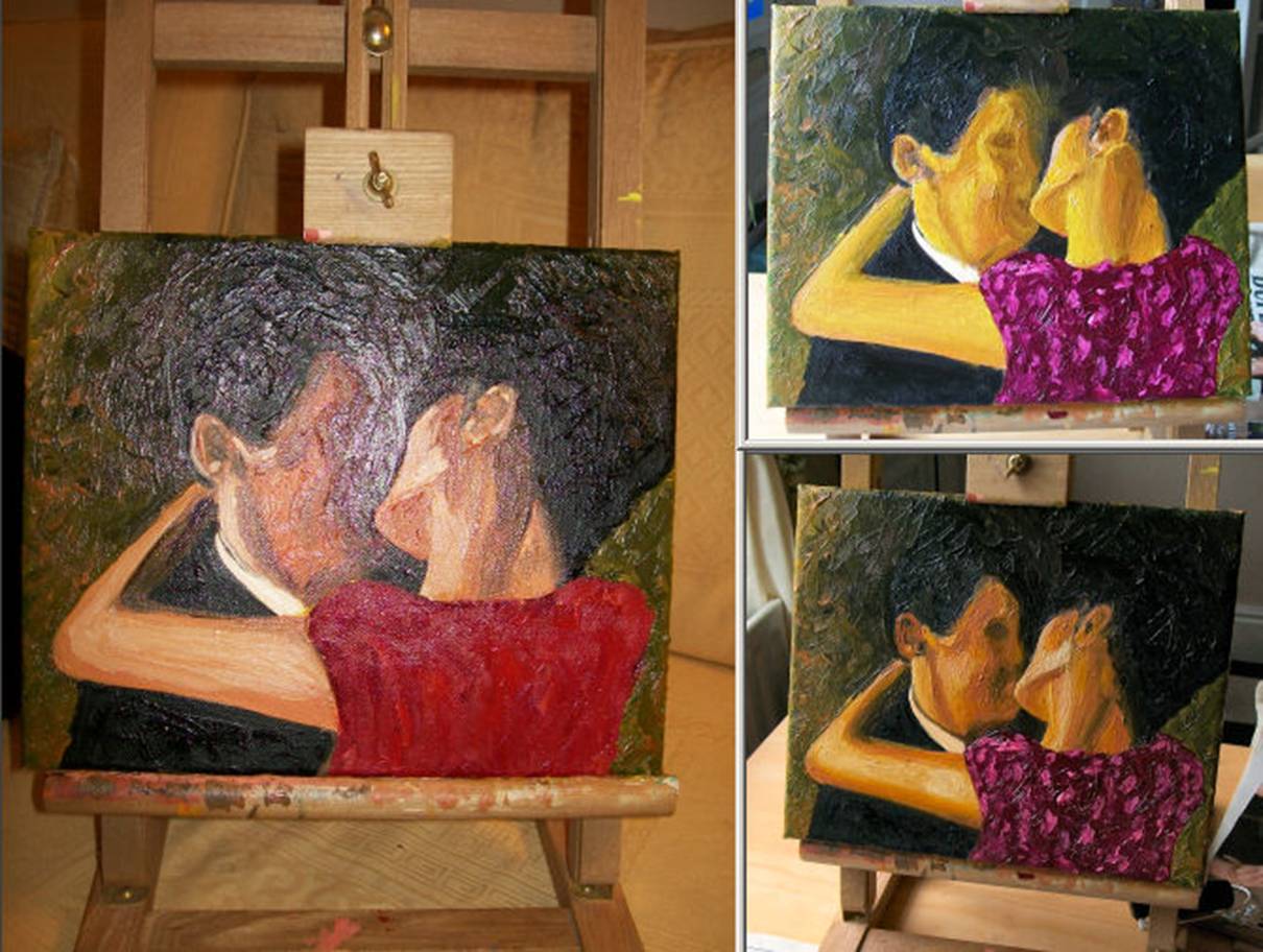 about to kiss him. As you can see I painted the man partially looking into her