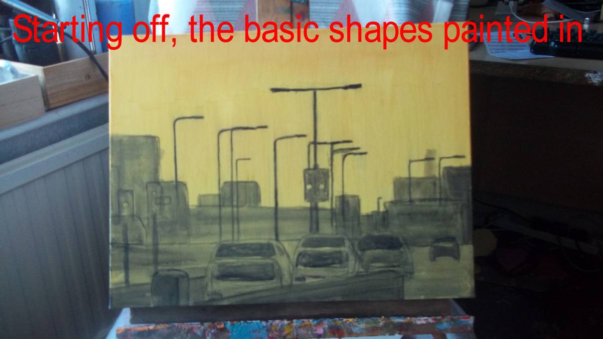 wasn’t sure where to start. How do you paint traffic in the evening? I drew in