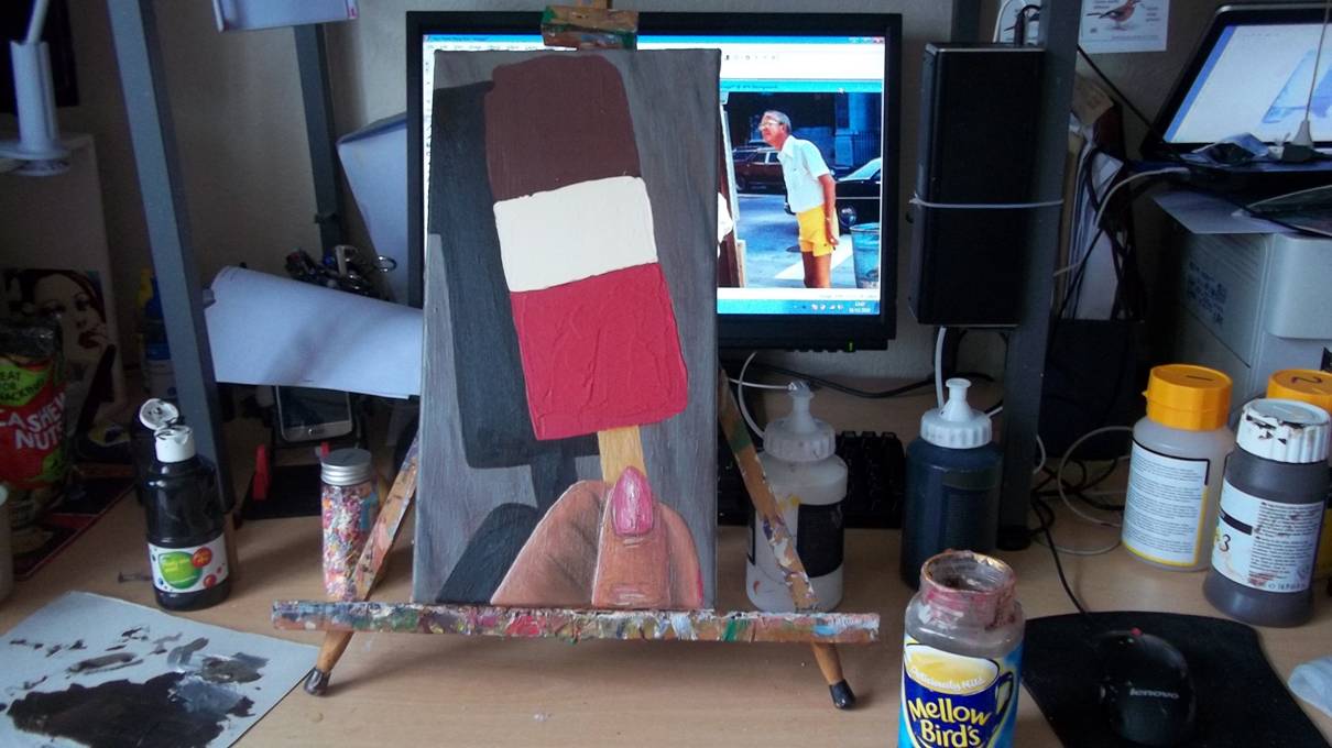 a Fab lolly in acrylic paints. I smeared paint over