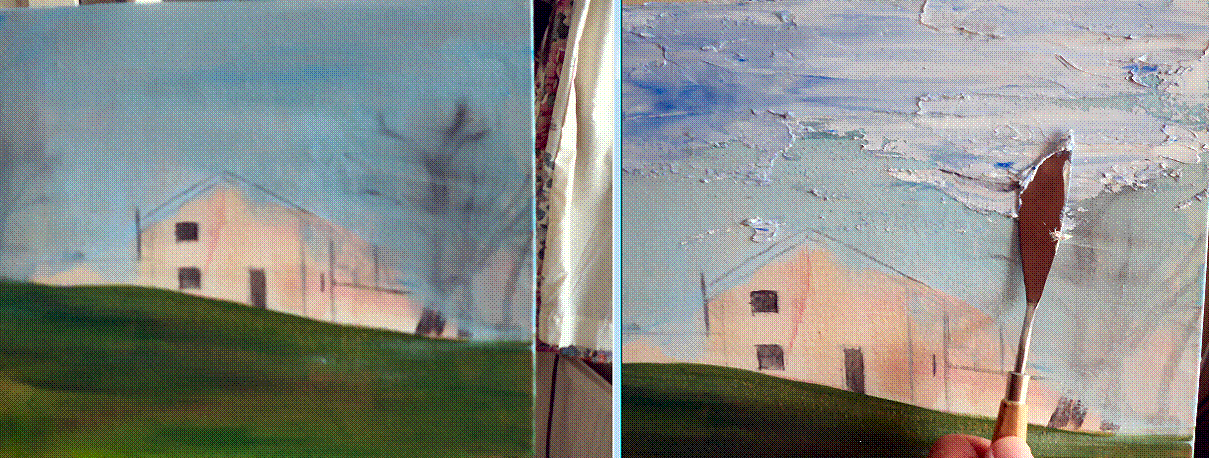 I’d do a quick painting on a small one foot board using a knife than brushes. I