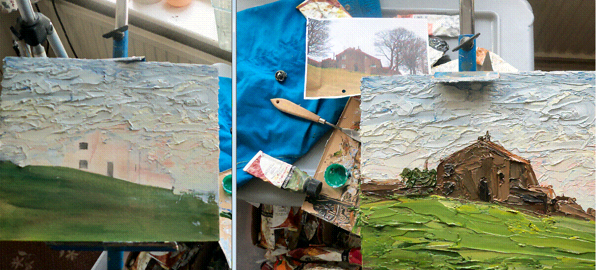 how the line of the hill cut across the scene. This made the painting about 50%