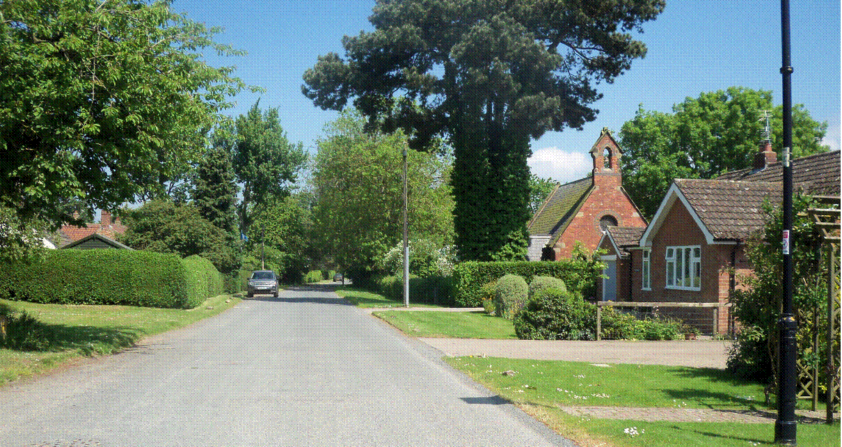 church spire but didn’t see one and asked a woman on horseback outside a sign “Harrowgate Bloodstock Ltd” where the village buried their
