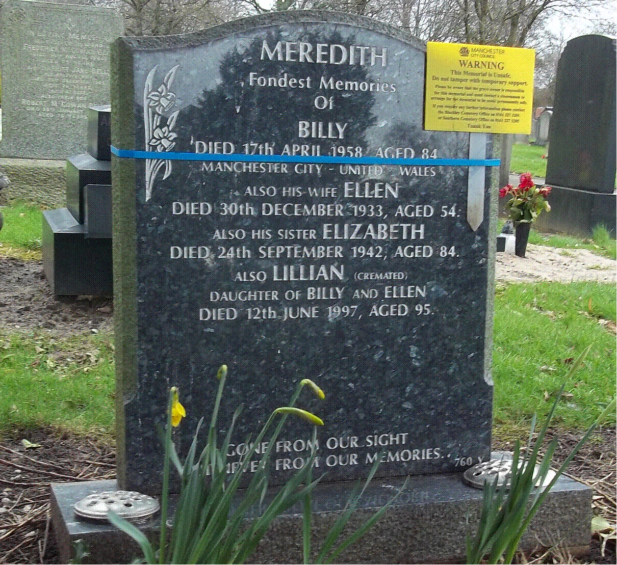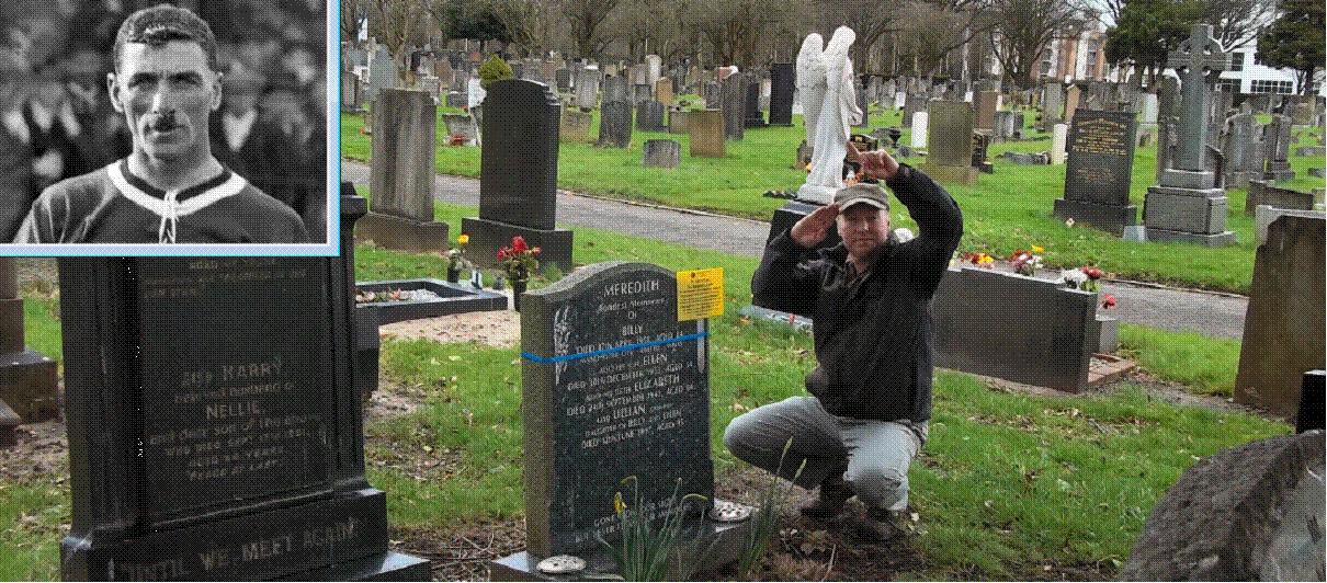 footballer Billy Meredith. Here I am at his grave and he was lowered into the