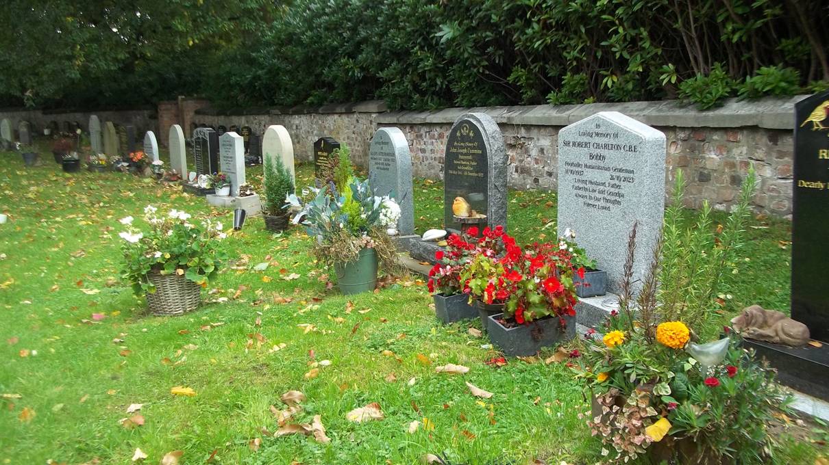 we visited singer Ian Curtis’s grave while there). Bobby’s home was on Chelford Road so we searched the churchyard near his home.