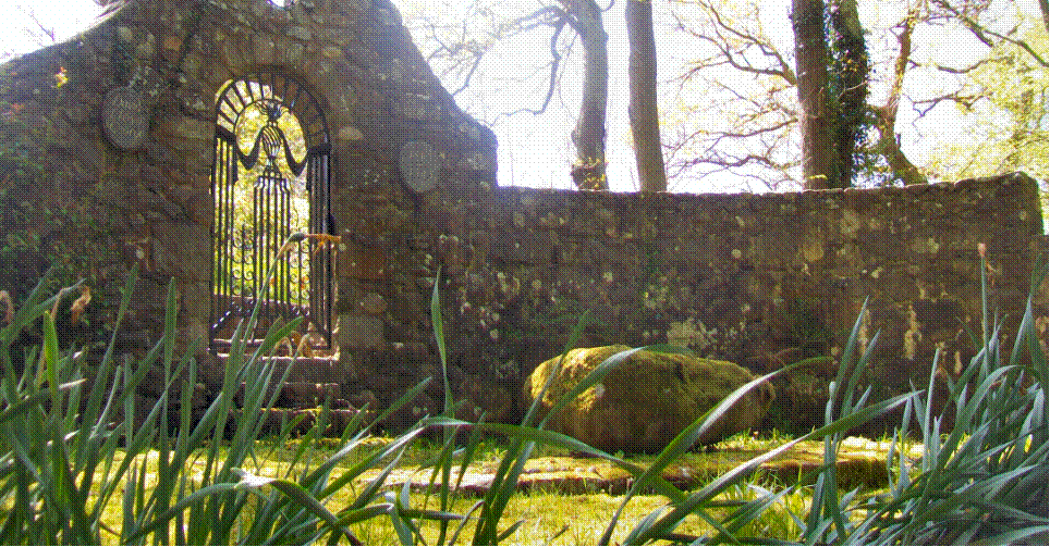 suddenly a stone archway appears and the grave is just there marked by a