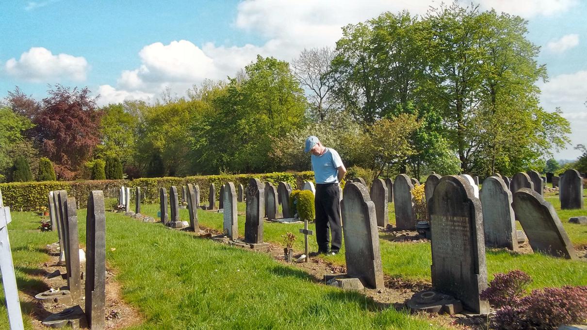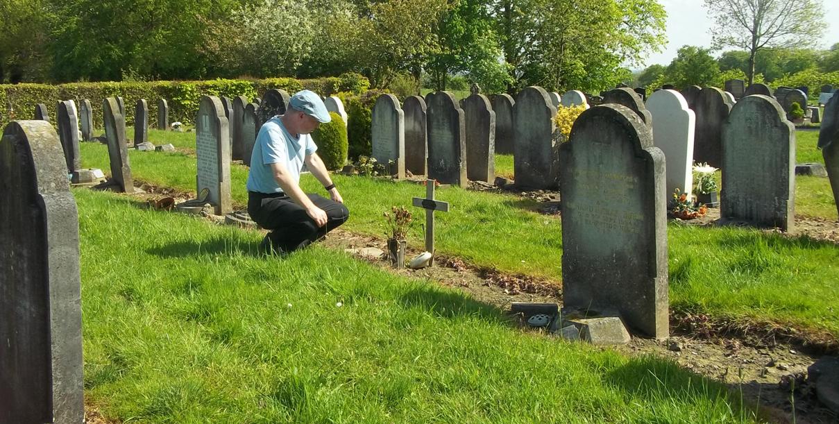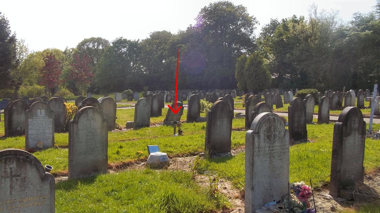 grave in a sprawling cemetery in Leeds.
