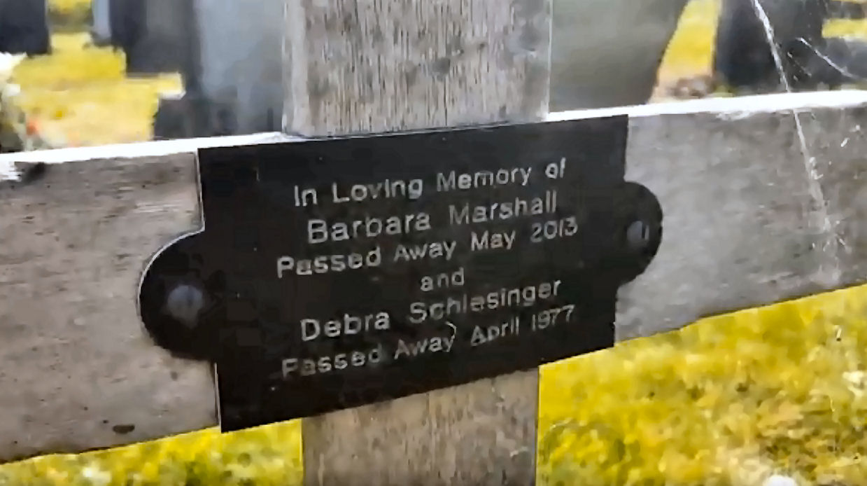 cross marks the spot and a plaque confirms who lies here (two women are buried