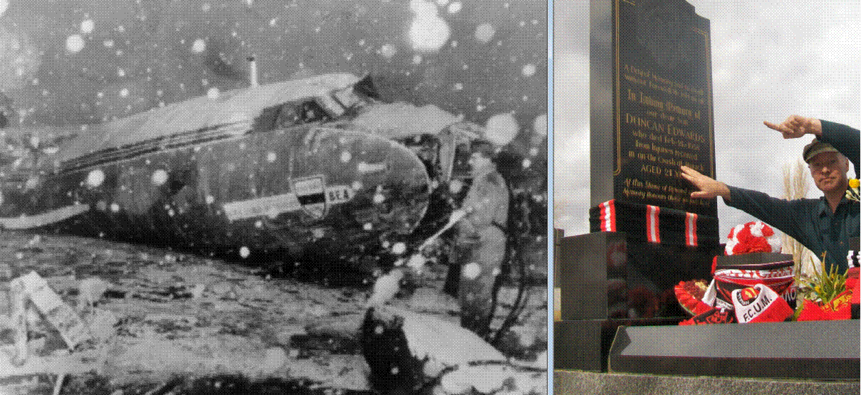 died instantly but Duncan survived with broken legs, crushed ribs and damaged
