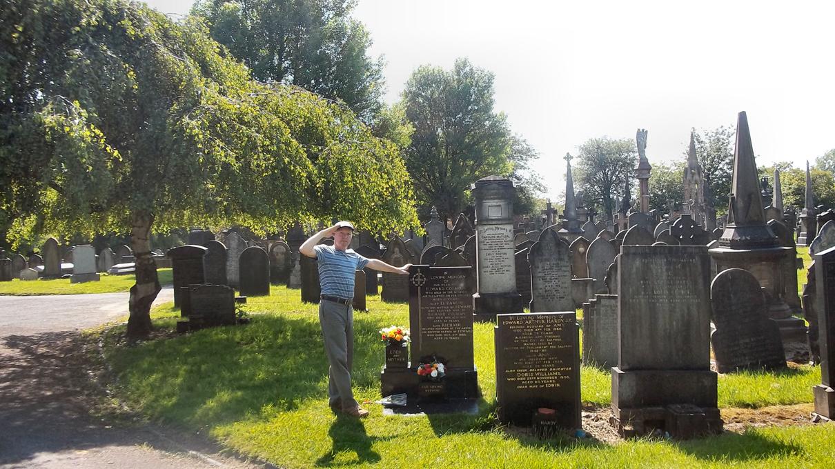 Eddie was erected by the side of the grave but vandals damaged it. It was