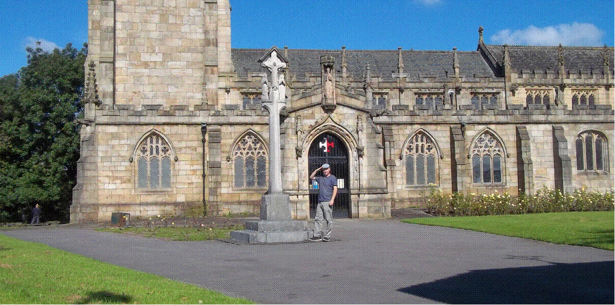 lies in St. Chad's churchyard overlooking the centre of Rochdale.