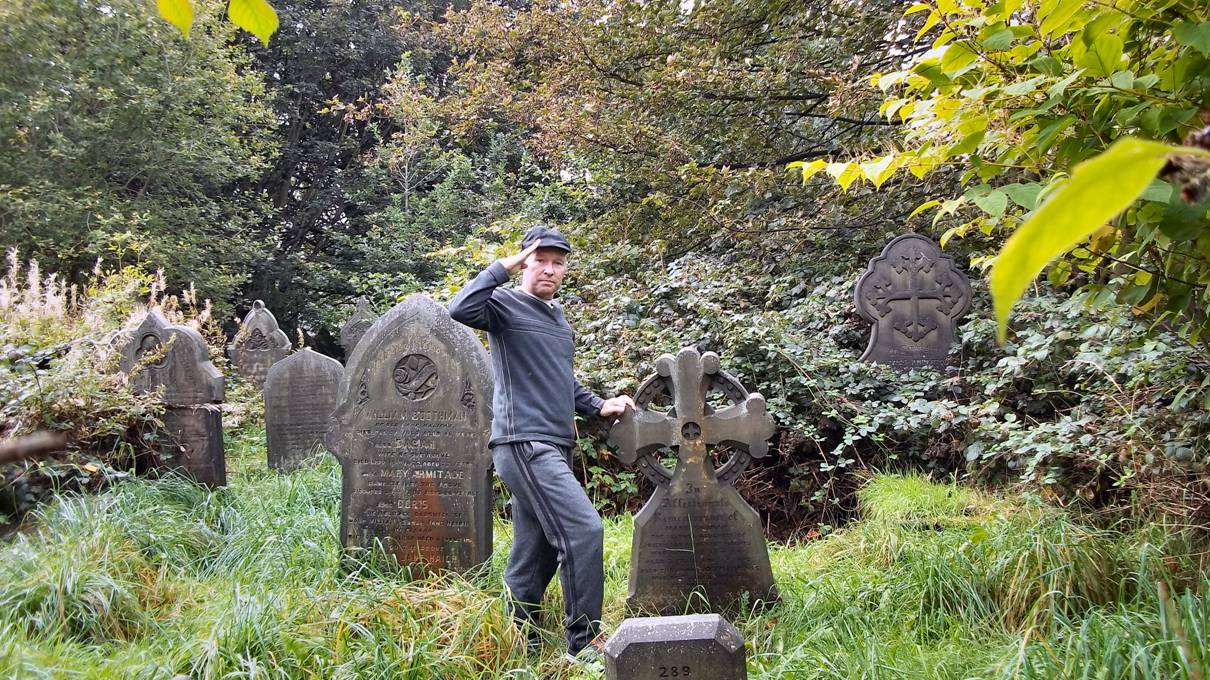 find him in an overgrown graveyard in near Halifax. The place was horribly