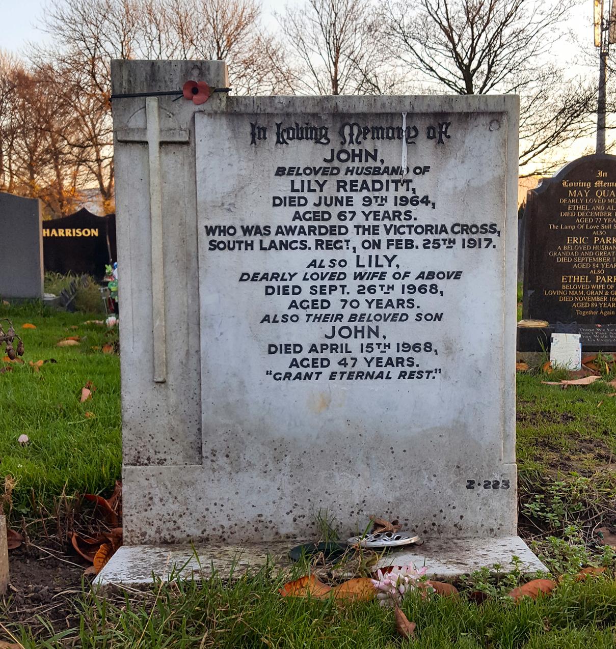 I am by the grave of John Readitt who was born not far away in Clayton. After