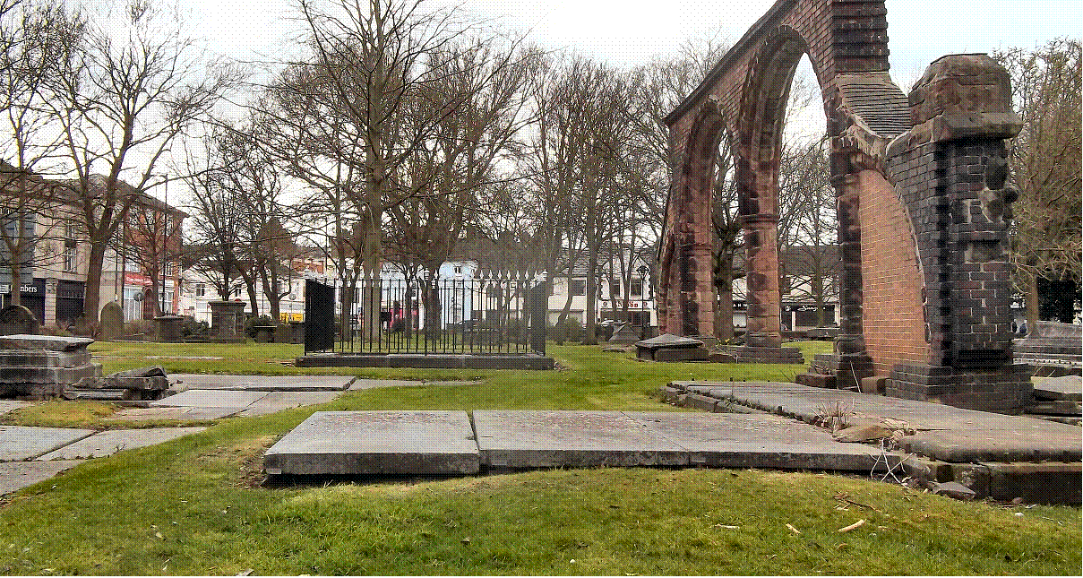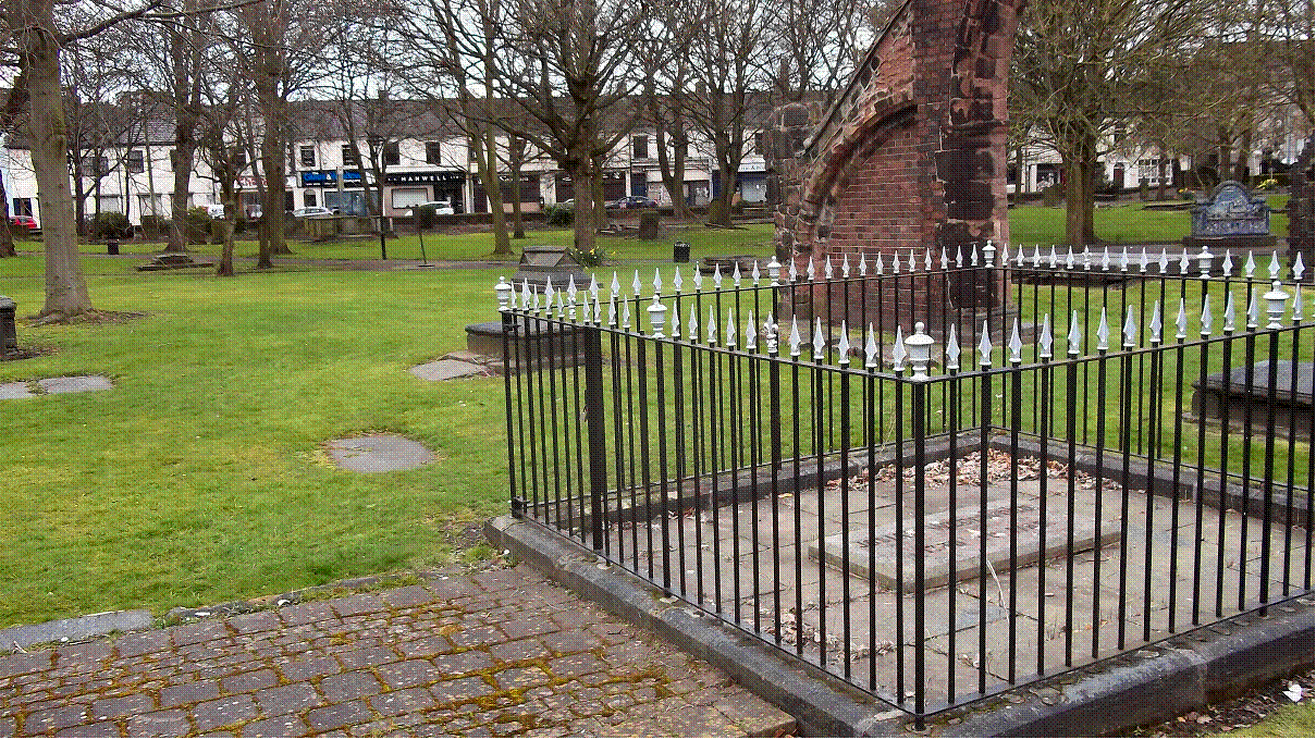 shops and pubs. I soon found his grave with railings around it next to a wall
