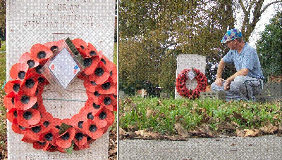 cemetery I spotted a red wreath on some poor kid (Gunner Clifford Bray) who’d