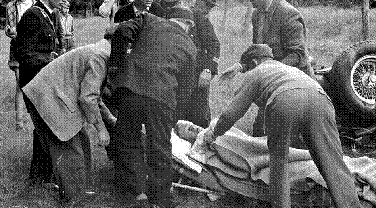 competing in the 1958 German Grand Prix at Bonn. On the tenth lap he went wide