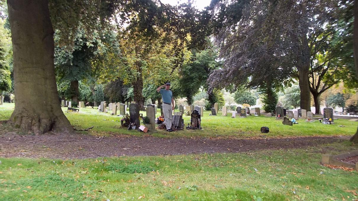 these photos I am by the grave of a drummer whose is buried in the quiet town in