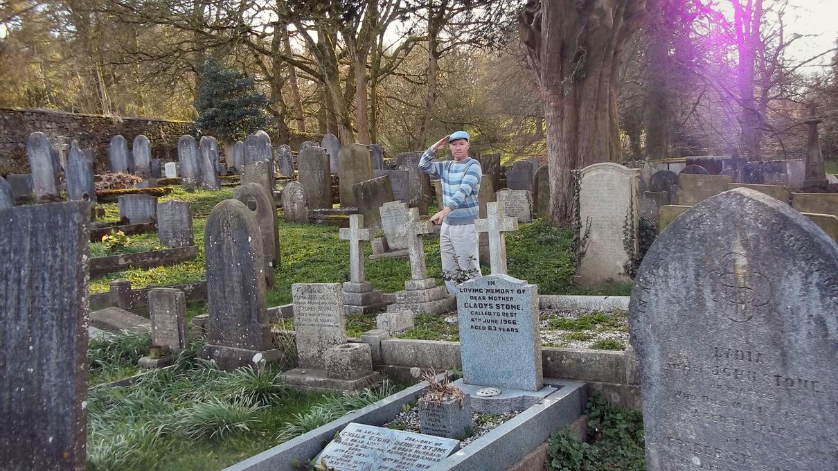 thanks to his sons. Here I am at the grave where Stanley's ashes are interred (I've
