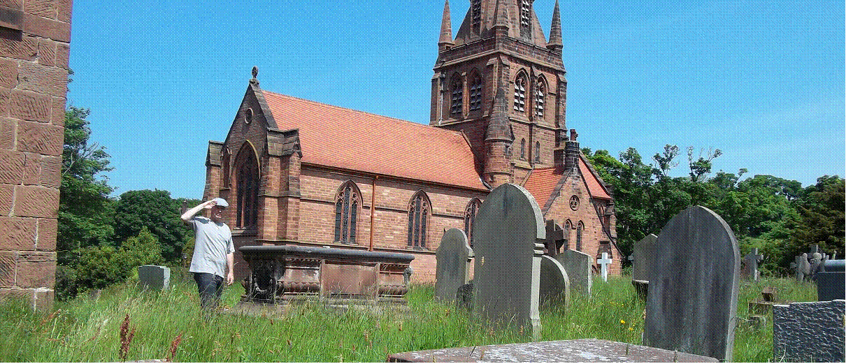 tomb in a small overgrown cemetery behind a bonny church. On the tomb are the