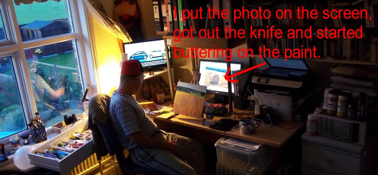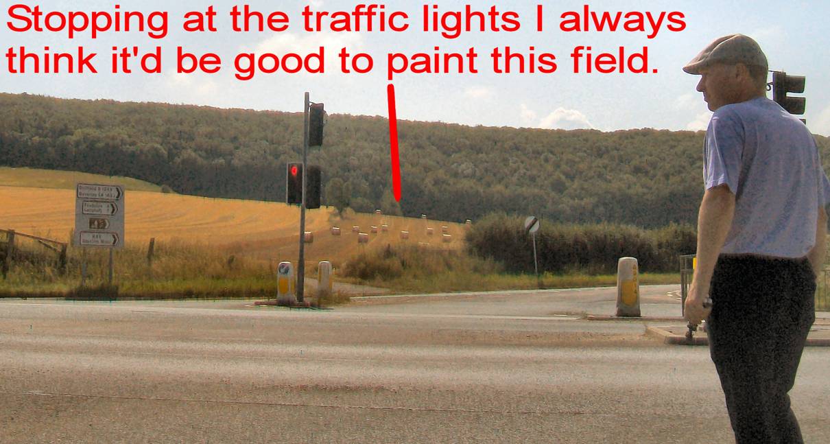 of bales further down the field. I added a few trees to use up excess paint. On