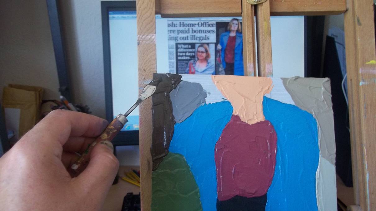 made use of it. I pulled out a photo frame and started daubing paint on the board