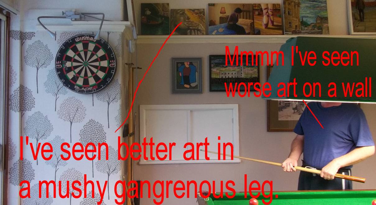 painting looks alright on the wall. I sat on the couch looking at it (while stroking