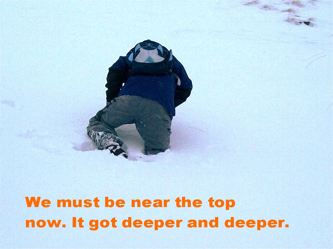 Here I am with my buddy Pumper on a walk up to Indian Head in deep snow. Wish I'd taken some gloves.