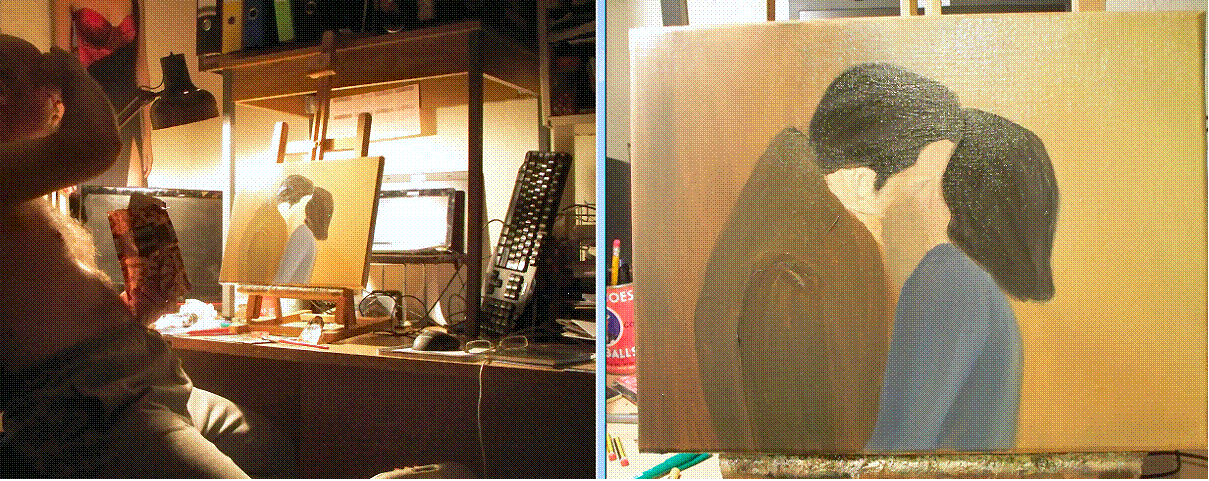 Here is another kissing painting which are easy to do
