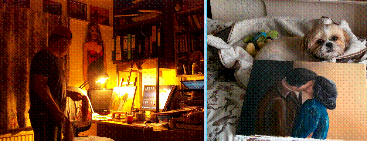 paintings this took about a year. The photograph of me painting it while watching